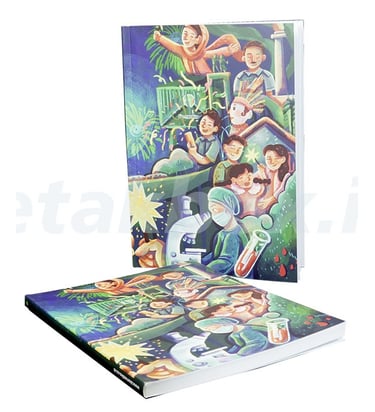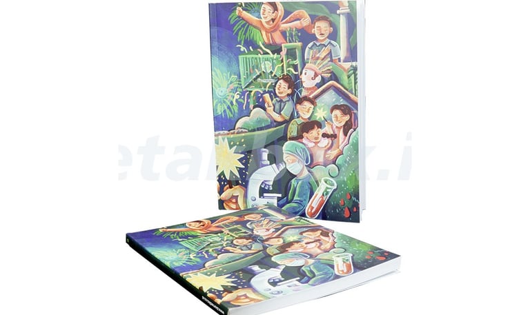 pencetakan buku terdiri dari pilihan penjilidan softcover dan hardcover. Jenis penjilidan softcover umumnya menggunakan material lentur namun tebal seperti Art Carton 230gr-310gr, dilapisi laminasi doff atau glossy untuk ketahanan ekstra. Teknik jilid yang umum digunakan adalah jilid lem panas (perfect binding) untuk hasil rapi dan ekonomis. Ukuran umum meliputi A5, B5, atau A4, cocok untuk novel dan modul, sedangkan penjilidan hardcover buku umumnya terdiri dari papan karton tebal (board no. 30/40) yang dilapisi art paper 120-150 gsm dengan laminasi doff/glossy untuk daya tahan maksimal. Spesifikasi teknis meliputi ukuran (A4, B5, A5), penjilidan jahit benang (binding), dan finishing tambahan seperti spot UV**emboss, atau hot stamping