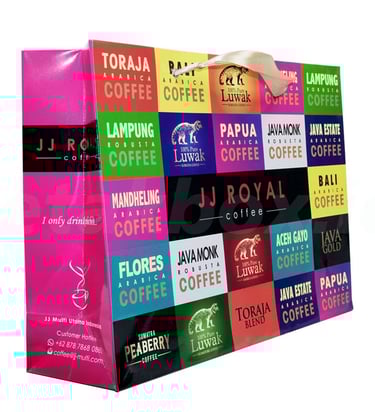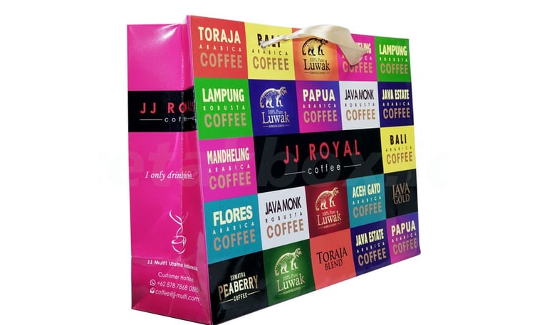 Paper bag umumnya meliputi jenis bahan kraft, ivory, art paper dengan gramasi 100-350 gsm, ukuran kecil hingga ekstra besar, jenis gagang tali kur, pita, kertas lipat, dan finishing doff/glossy, laminasi. Ukuran umum meliputi 11x5x19 cm (S), 19x9x32 cm (M), hingga 30x13x41 cm (L), dengan gramasi lebih tebal untuk barang berat