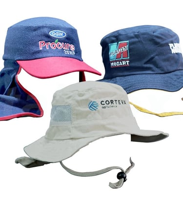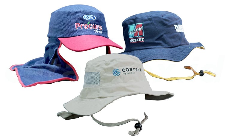 Topi terdiri dari ragam model menurut peruntukannya. Bahan topi yang umum digunakan meliputi drill, rafel, kanvas, polyester, dan jaring (mesh) sesuai peruntukannya, penambahan material design umumnya menggunakan bordir, DTF ataupun sublim.