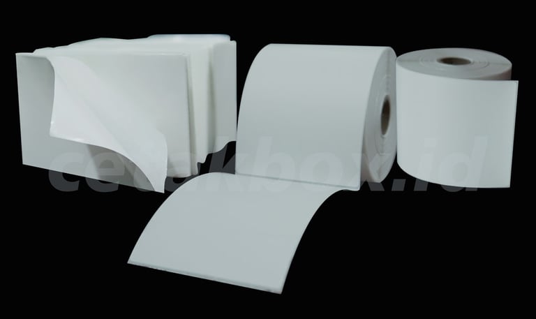 Thermal label adalah stiker kertas khusus yang dicetak menggunakan panas tanpa tinta/ribbon, ideal untuk barcode, resi, dan label produk. tipe Direct Thermal (tidak awet lama) atau Thermal Transfer (lebih tahan lama), jenis core (umumnya 1 inch), dan isi per roll variatif